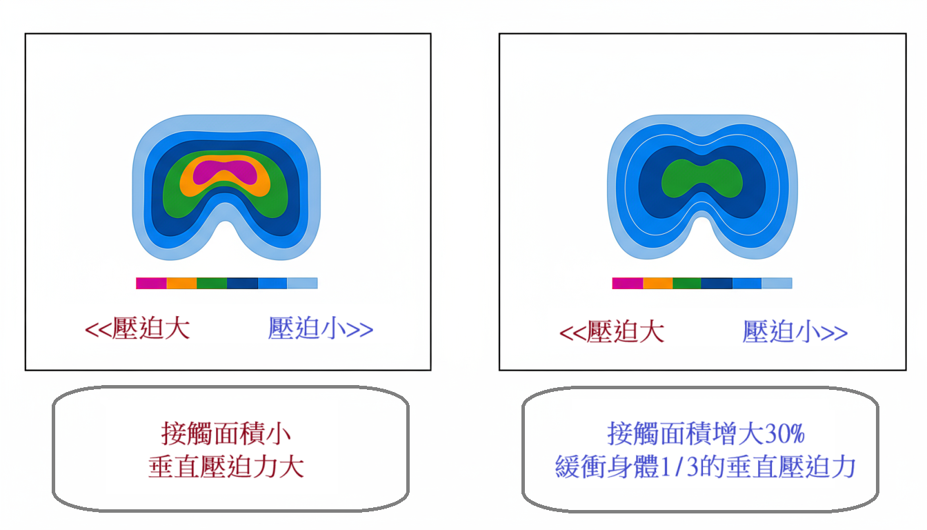 按壓式 3D 氣囊減壓坐墊是基於人體工學原理對久坐障礙以及減緩人體重量壓迫血管而研發的一款產品,該產品能有效防止或減緩久坐一族因股骨壓迫而導致臀部血液循環不暢,在長期受到擠壓與摩擦的情況下產生局部皮膚角質層增生(變厚),粗糙變硬,黑色素沉澱而產生的黑印.